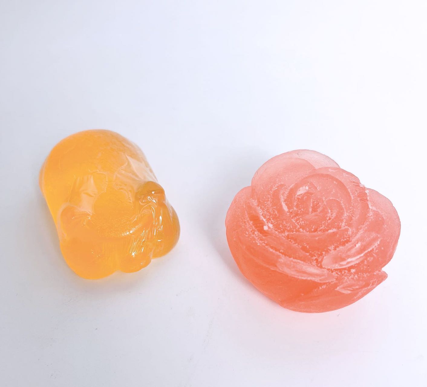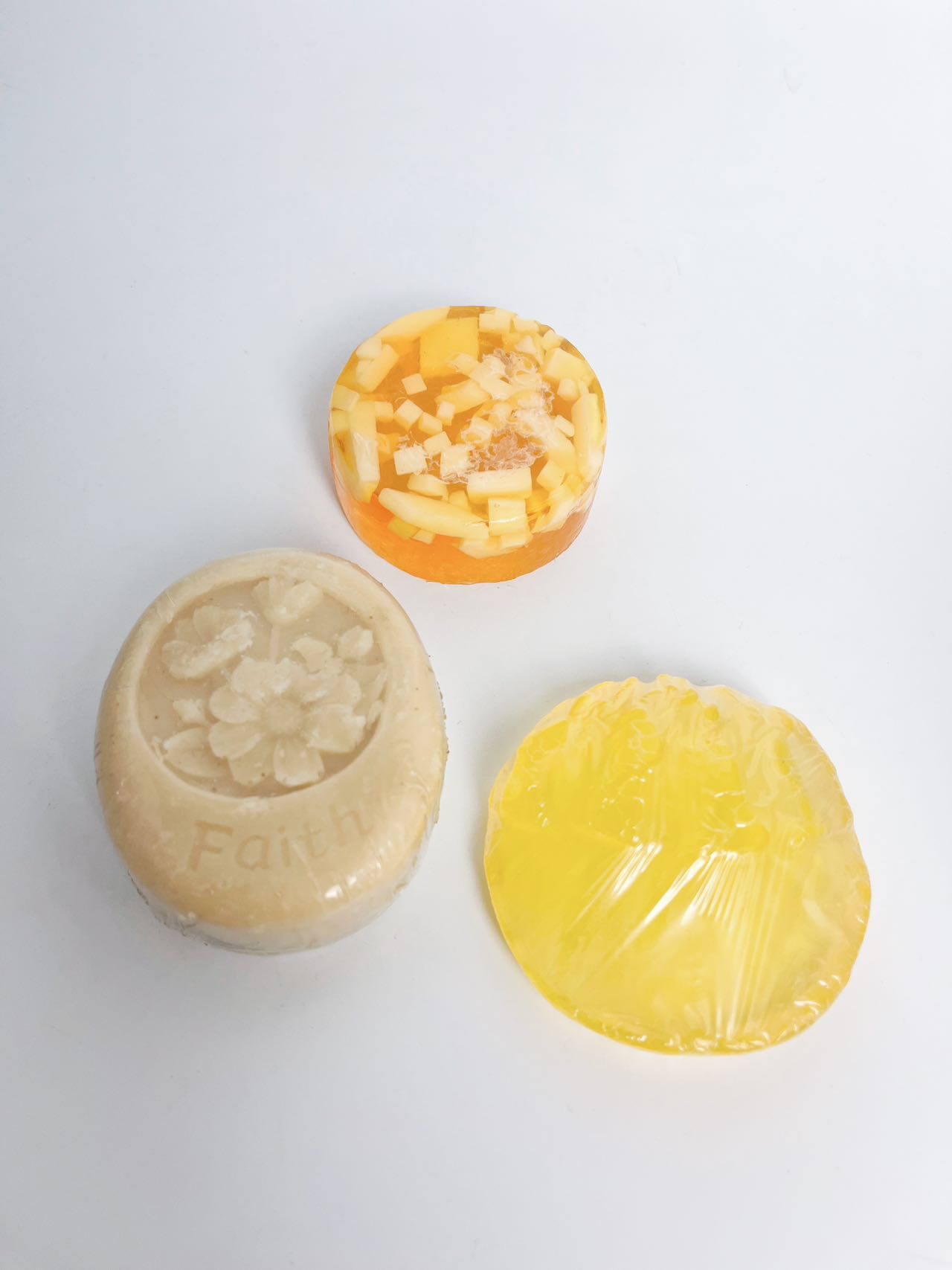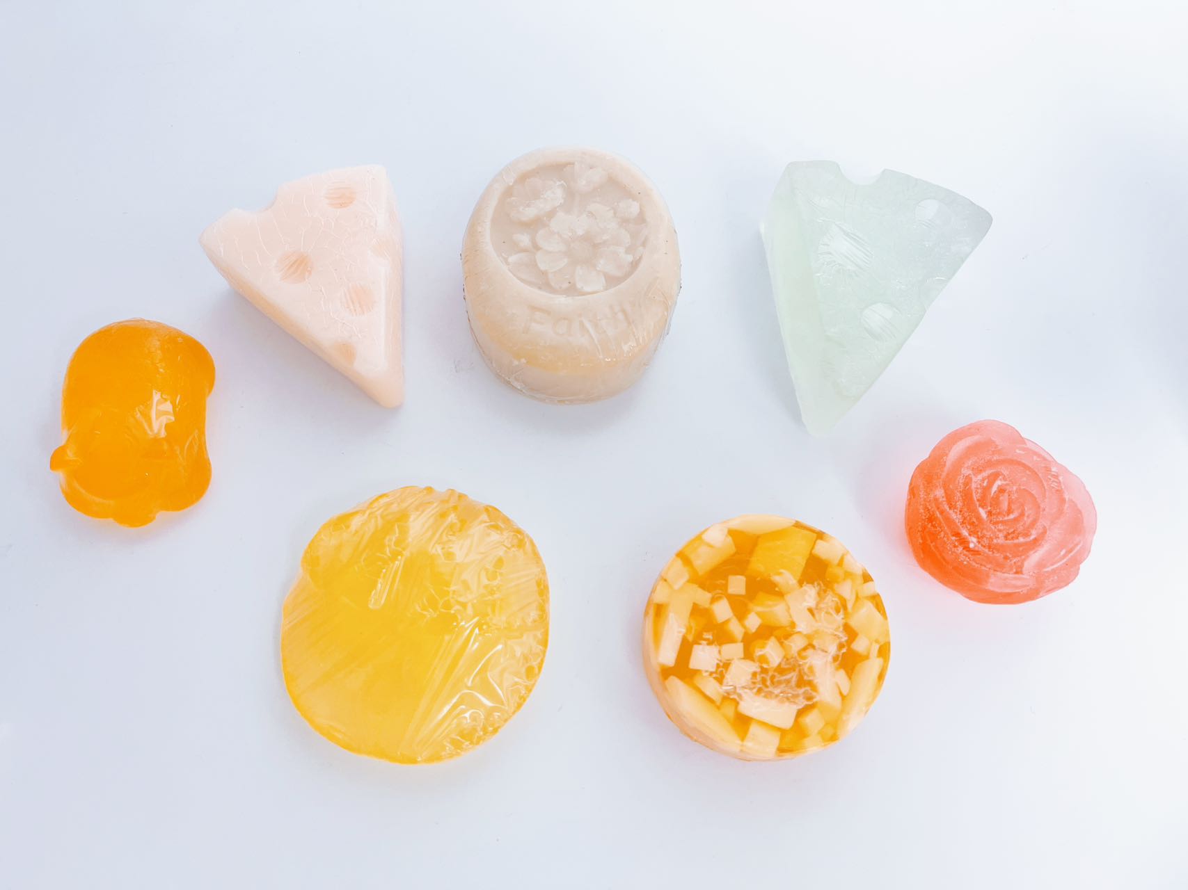 以艾草、藏紅花、臘梅、沉香、紫檀、酒糟、曲酸、抹茶、藥草、桂花、蠶絲蛋白、氨基酸、天山雪蓮、檀香木、紅棗、咖啡、仙人掌、蘆薈、玫瑰、茉莉、伊蘭等為主題的精油皂。