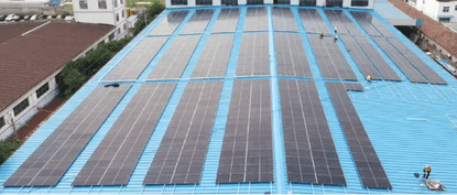 為了契合屋面彩鋼瓦顏色,該款組件邊框顏色選擇了與彩鋼瓦顏色一致的天藍色,能夠很好的體現了復合質料邊框的顏色可選擇性,其質料優異的力學性能提高了產物的結構強度,在抗風載和雪載方面有著更好的體現;該分布式項目整自結皮體接納壓塊安裝,安裝方便簡潔。