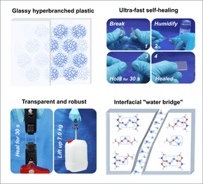 圖3 UGPU的自修復(fù)機(jī)制研究該工作以“Ultra-Fast-Healing Glassy Hyperbranched Plastics Capable of Restoring 26.4 MPa Tensile Strength within One Minute at Room Temperature”為題發(fā)表在《Angew. C發(fā)泡hem.》期刊上。