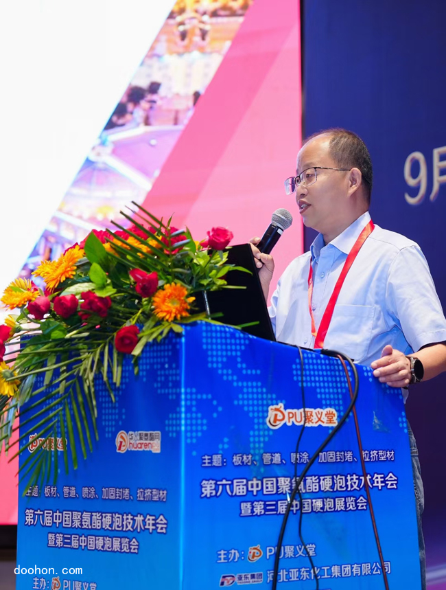 主辦方致辭 會議伊始,本次會議的主辦方代表——河北亞東化工集團有限公司 原料聚氨酯發泡研究院副院長 袁海順為大會致辭!