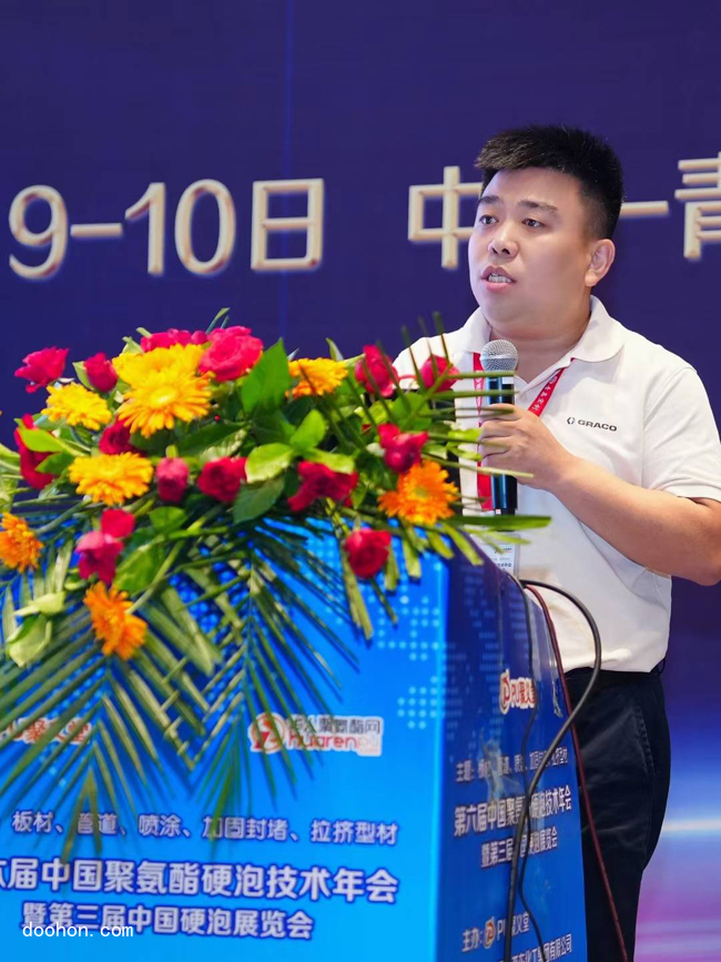 固瑞克流體設備(上海)有限公司 營銷經理 李東太 為了讓各人更透徹的了解噴涂生產中必不行少的設備——噴涂機,助力硬泡制品創新、發展,大會邀請固瑞克流體設備(上海)有限公司 營銷經理 李東太為各人講解固瑞克的發展歷史、制品與服務,以及如何挑選噴涂設備。