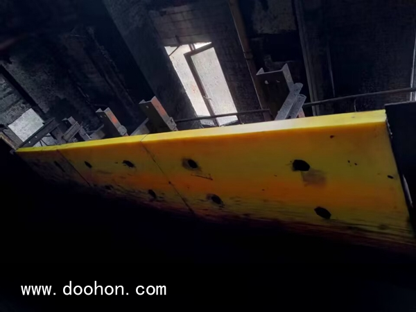 據悉,該公司運輸系統機尾以往使用的皮帶擋煤板都是用槽鋼焊接成擋煤板框架,上部使用厚鐵板焊接在擋煤板框架,下部將廢舊皮帶制成尺寸合適的擋煤皮子,用螺絲固定在鋼板上遮擋原煤,雖然廢舊皮帶成本低,但是在生產使用過程中,擋煤皮子磨損較快,煤量大的情況下,運行2-3天就要更換擋煤皮子,不僅維修量大,而且會出現擋煤皮子脫落,造成溜煤斗卡堵導致皮帶劃傷,存在一定的安全隱患。